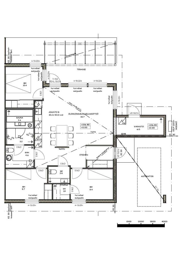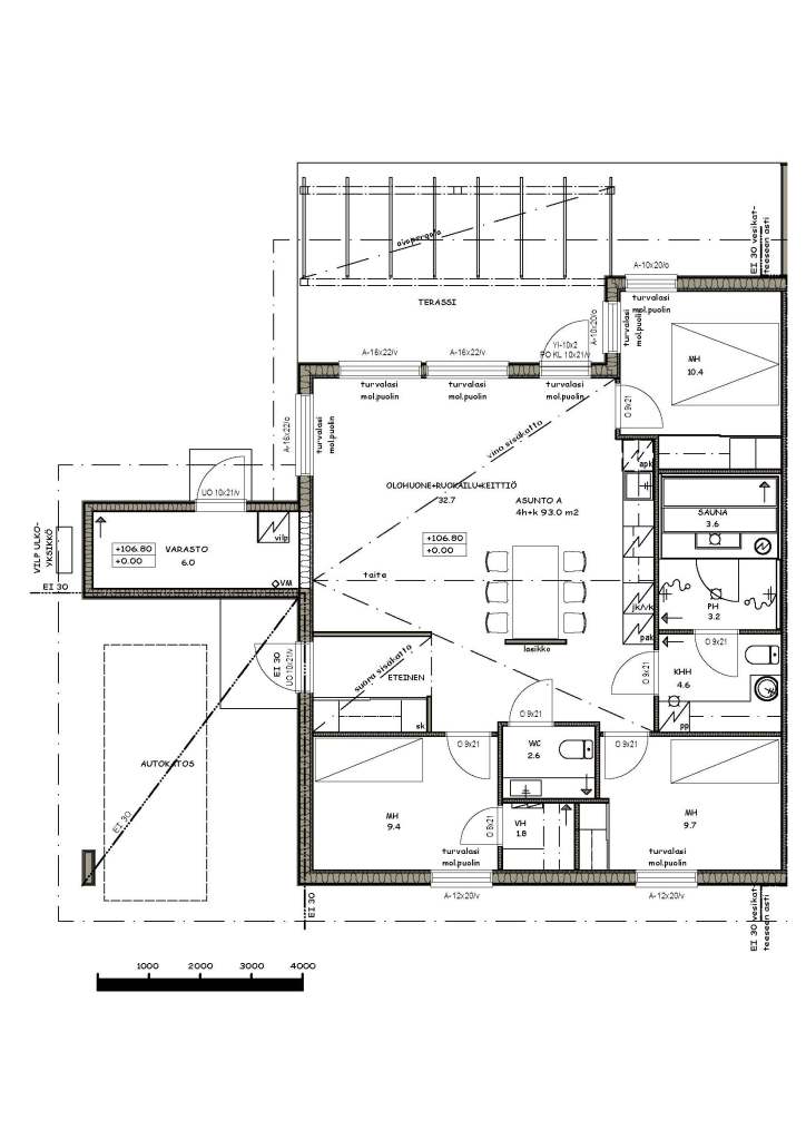 - Huonejakaumaltaan 4h+k+vh+s ja pinta-alaltaan 93 m2.