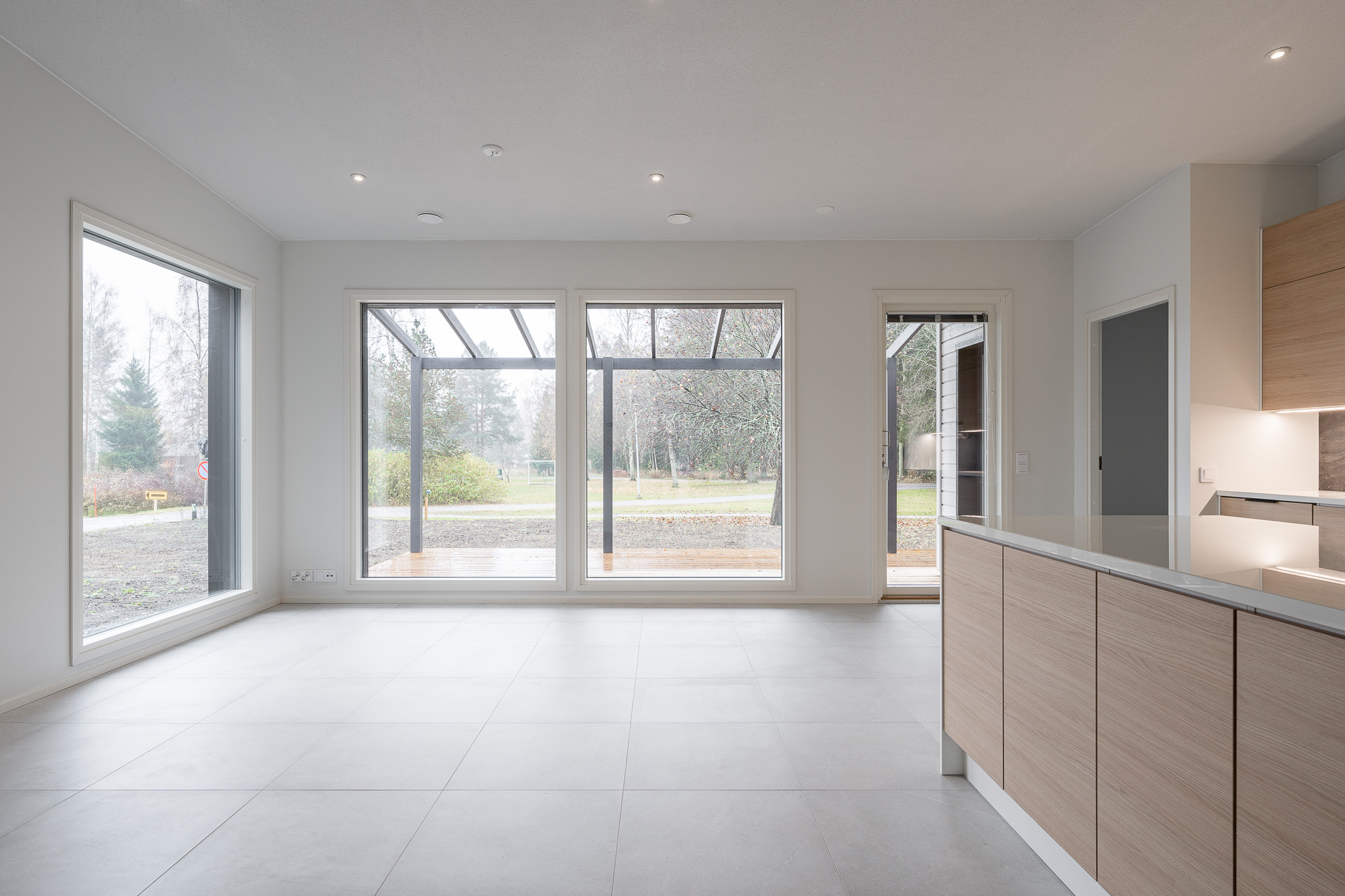 - Isot lounaaseen ja hoidetun puistoalueen suuntaan avautuvat terassit.